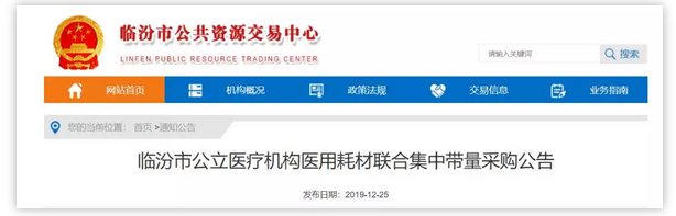 昨日(12月25日),山西省臨汾市公共資源交易中心發(fā)布《臨汾市公立醫(yī)療機構(gòu)醫(yī)用耗材聯(lián)合集中帶量采購公告》(下稱《公告》)。