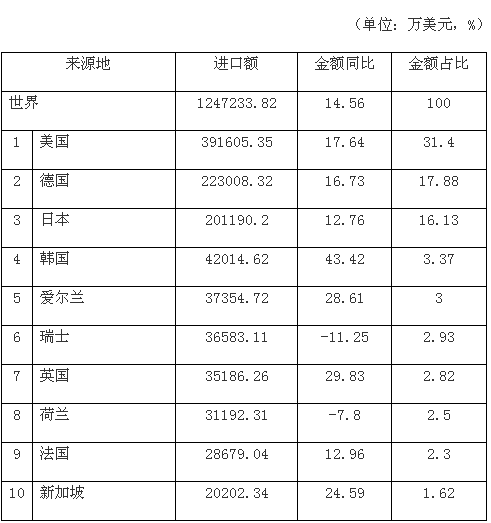 2012年中國醫(yī)療器械產(chǎn)品進(jìn)口主要來源地