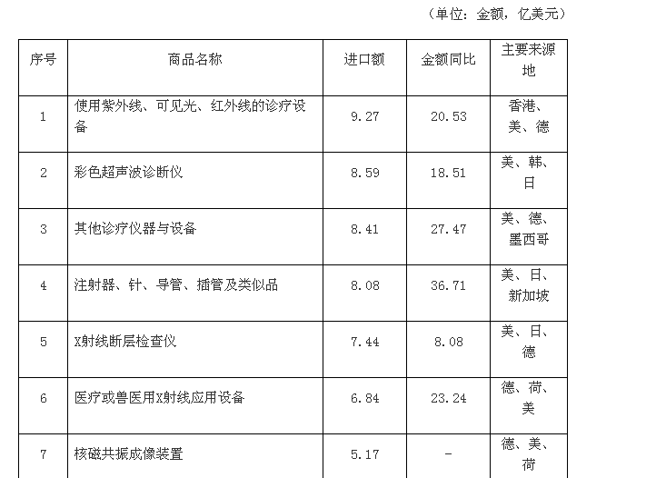 2012年中國醫(yī)療器械主要進(jìn)口產(chǎn)品情況