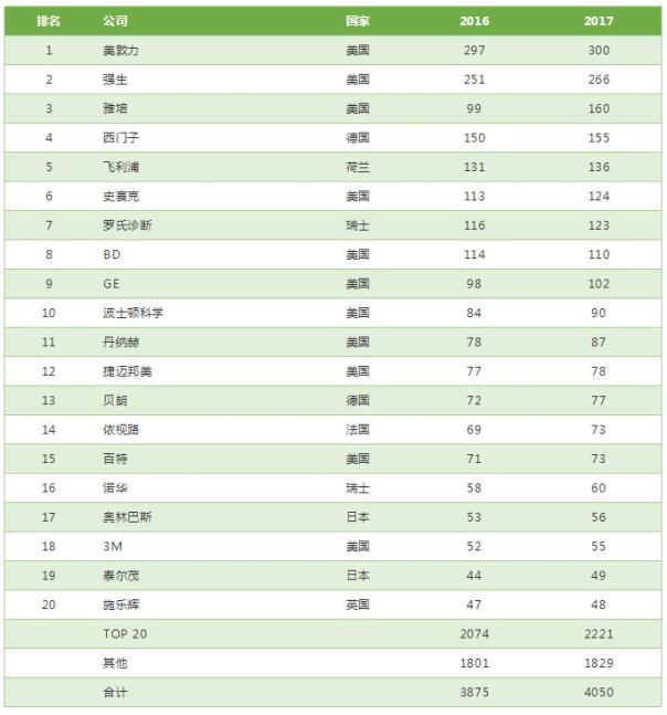 2018全球醫(yī)療器械公司20強名單公布