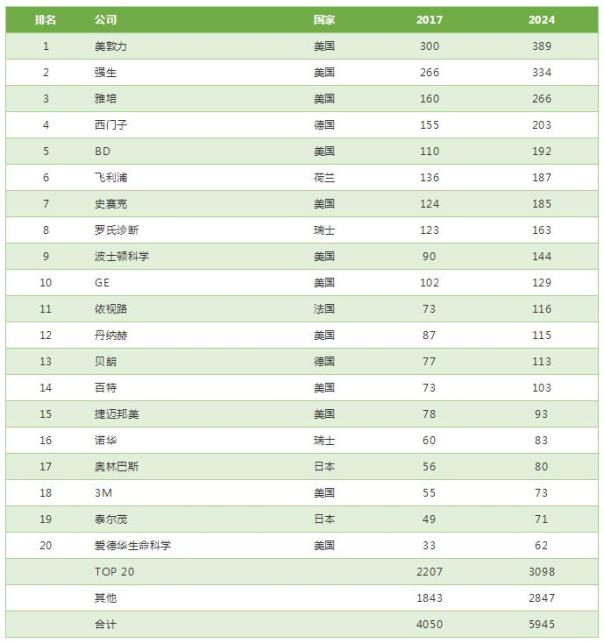 2024全球醫(yī)療器械公司 TOP20