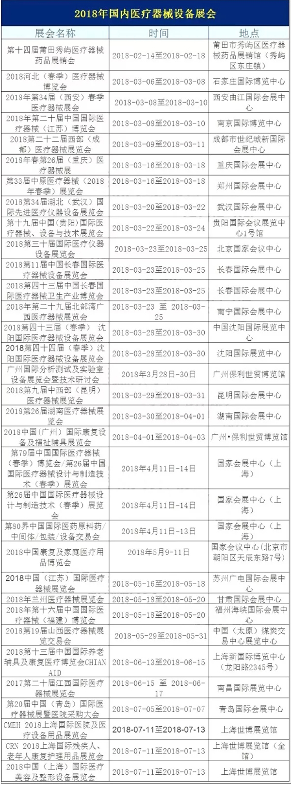珍藏!2018年全球醫(yī)療器械相關(guān)展會(huì)匯總(國(guó)內(nèi)33場(chǎng)、國(guó)外9場(chǎng))??!