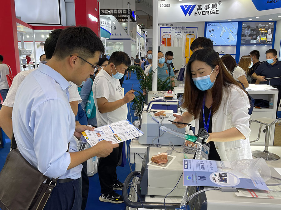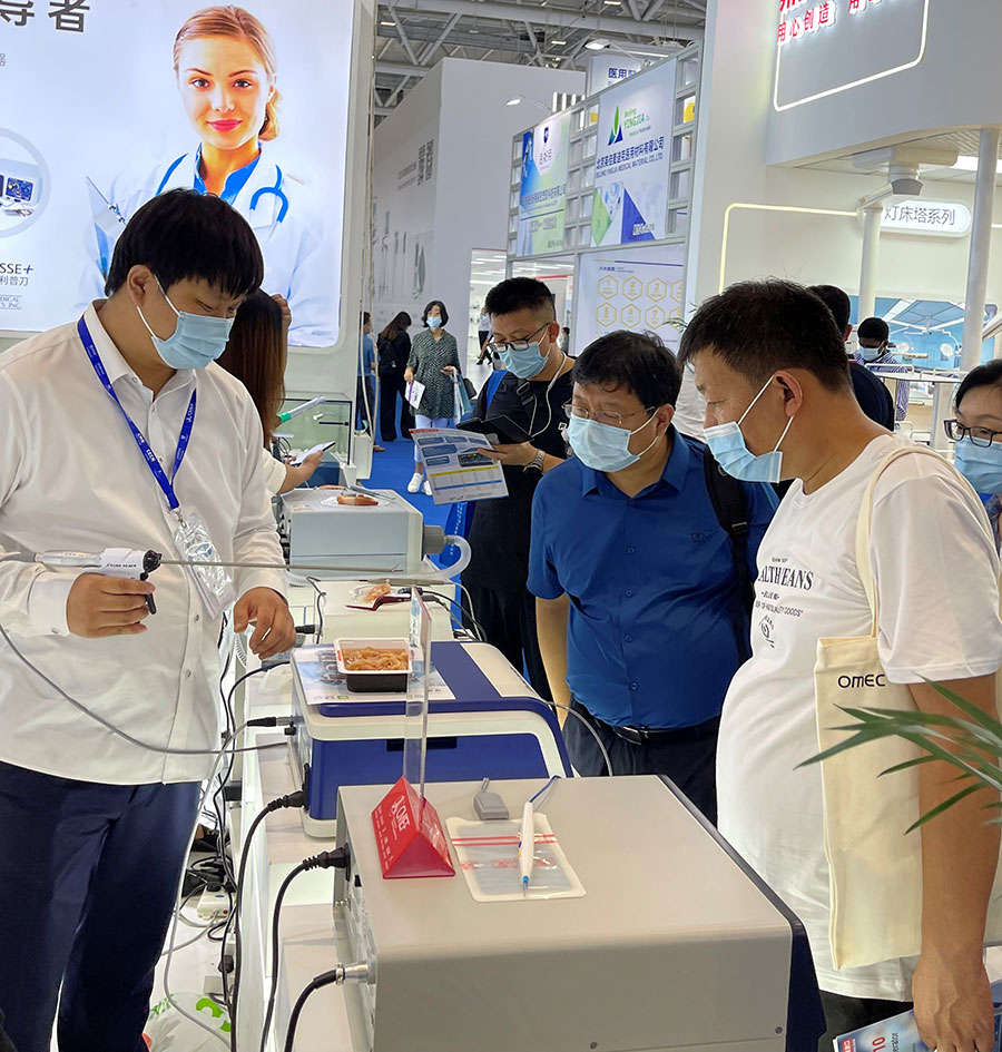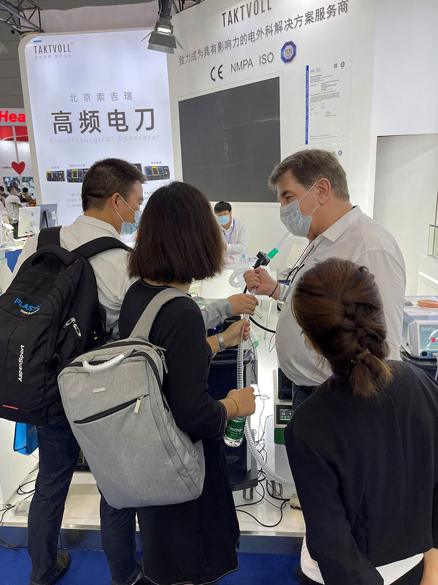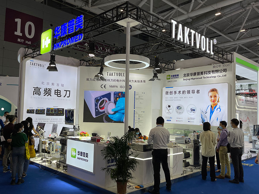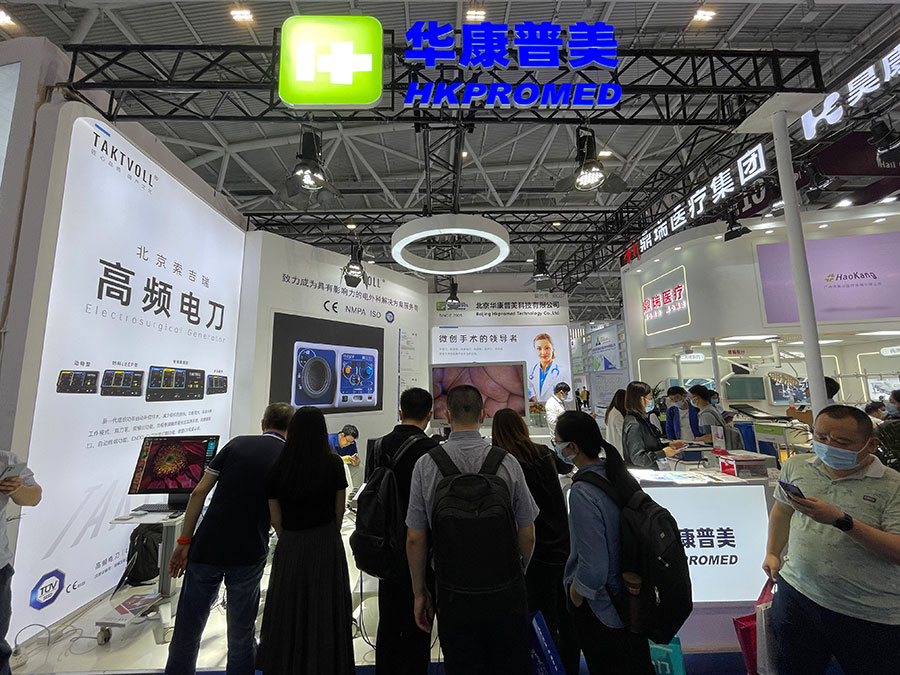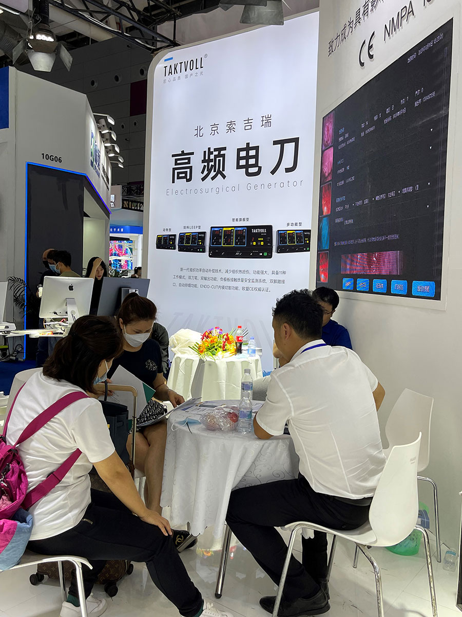 此次,華康普美攜自主研發(fā)品牌TAKTVOLL高頻電刀及利普刀,高清陰道鏡系列及吸煙器等產(chǎn)品亮相本次展會(huì),吸引了大量的觀眾駐足咨詢……