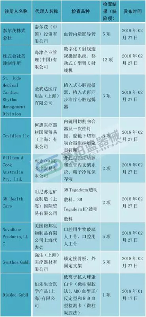 2018年2月27日,國(guó)家藥監(jiān)總局網(wǎng)站公布了8家醫(yī)療器械企業(yè)境外生產(chǎn)現(xiàn)場(chǎng)檢查結(jié)果。這也是藥監(jiān)總局公布的2017年度第3批境外檢查結(jié)果。
