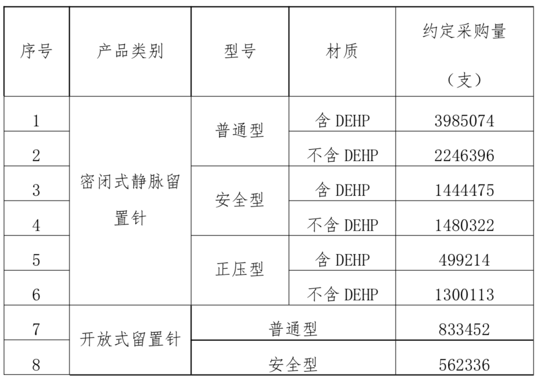 留置針類帶量采購文件顯示,約定采購量根據(jù)參與集中采購的醫(yī)療機(jī)構(gòu)上報的 2019 年總采購量 80%確定,將對12351382個留置針進(jìn)行帶量采購。