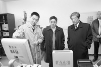 下圖為北京市醫(yī)療器械檢驗(yàn)所工作人員為國(guó)家食品藥品監(jiān)督管理局局長(zhǎng)邵明立(右)、北京市副市長(zhǎng)丁向陽(yáng)進(jìn)行實(shí)驗(yàn)演示和解說(shuō)。