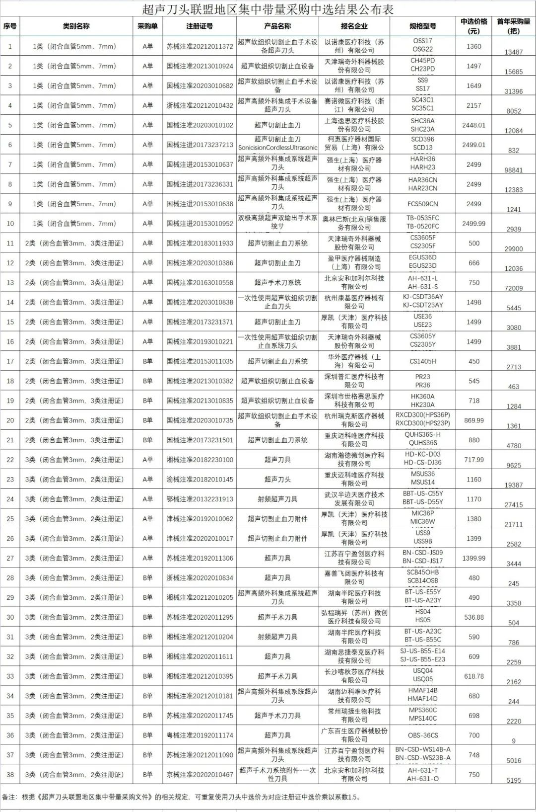 近日,深圳市公共資源交易中心發(fā)布《關(guān)于公布超聲刀頭及預(yù)充式導(dǎo)管沖洗器集中帶量采購(gòu)中選結(jié)果的公告》,其中公布了各企業(yè)所有中選產(chǎn)品的中選價(jià)格和首年采購(gòu)量(文末附表單)。