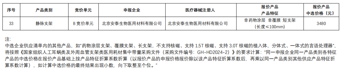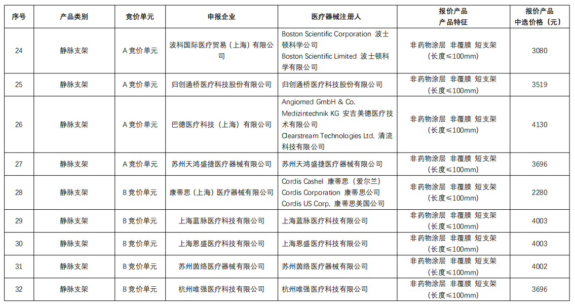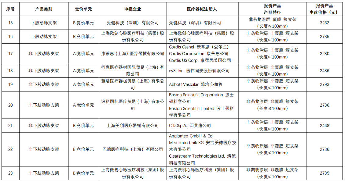 下肢動脈支架:庫克醫(yī)療、維芮安醫(yī)療通過規(guī)則二中選,巴德醫(yī)療、波科、先鋒科技、心脈醫(yī)療通過規(guī)則三中選;非下肢動脈支架:巴德醫(yī)療通過規(guī)則二中選,波科、心脈醫(yī)療通過規(guī)則三中選;靜脈支架:藍(lán)脈醫(yī)療、恩盛醫(yī)療、茵絡(luò)醫(yī)療通過規(guī)則二中選,天鴻盛捷、唯強(qiáng)醫(yī)療、安泰生物規(guī)則三中選。