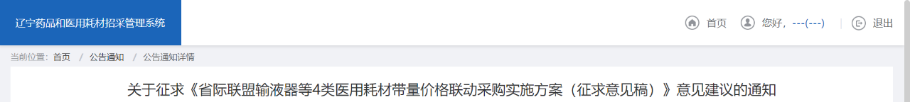 9月6日,遼寧省醫(yī)療機構藥品和醫(yī)用耗材采購聯(lián)盟發(fā)布《省際聯(lián)盟輸液器等4類醫(yī)用耗材帶量價格聯(lián)動采購實施方案(征求意見稿)》(完整附文末)。