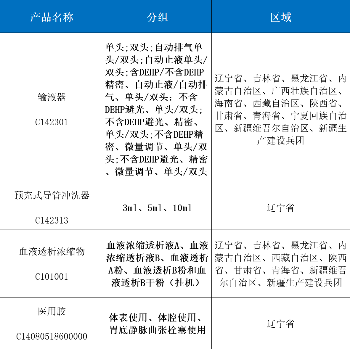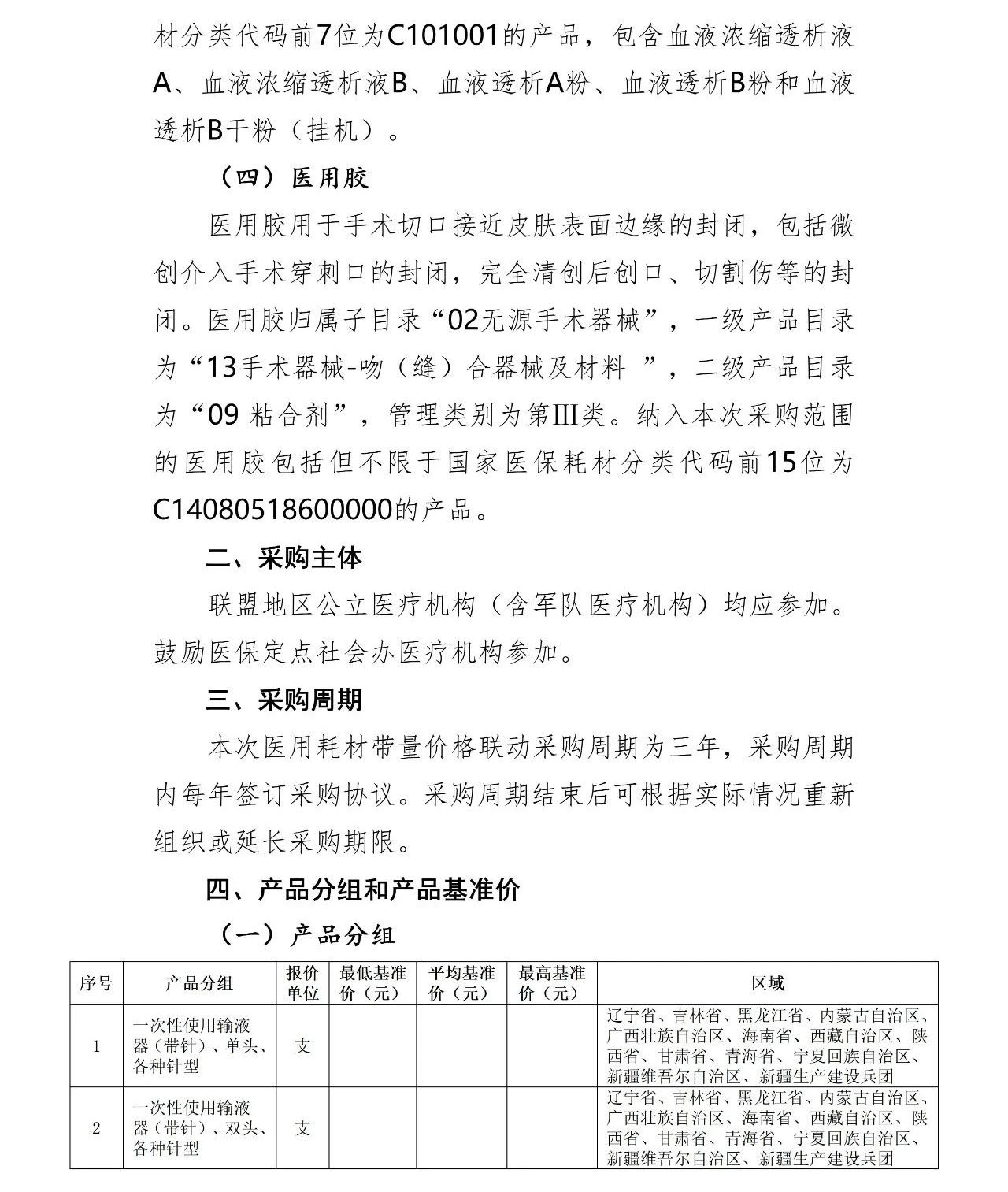 此次價格聯(lián)動采購品種為輸液器、預充式導管沖洗器、血液透析濃縮物、醫(yī)用膠,品種分組、聯(lián)動地區(qū)如下: