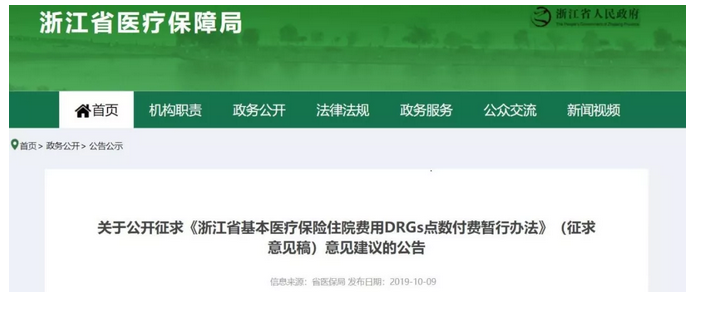 (10月9日),浙江省醫(yī)保局發(fā)布《浙江省基本醫(yī)療保險住院費用DRGs點數付費暫行辦法(征求意見稿)》(下稱《暫行辦法》)表示,浙江省所有基本醫(yī)保定點醫(yī)療機構開展的住院醫(yī)療服務,實施簡稱DRGs結合點數付費的,都將執(zhí)行此《暫行辦法》。