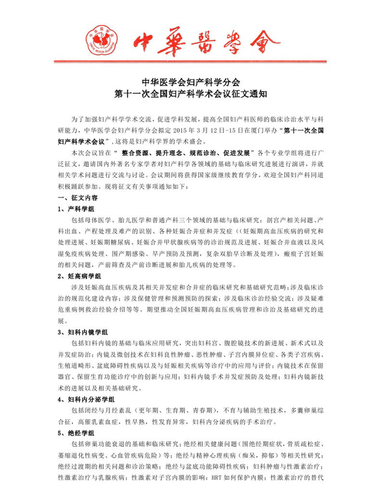 中華醫(yī)學(xué)會婦產(chǎn)科學(xué)分會第十一次全國婦產(chǎn)科學(xué)術(shù)會議