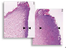 減輕熱損傷 組織學(xué)顯示,對(duì)比標(biāo)準(zhǔn)的電切尖端切口(圖2 ),表觀切口(圖1)明顯熱損傷減少