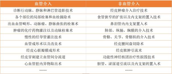 介入治療又可分為血管性介入術(shù)和非血管介入術(shù),其主要種類如下表所示: