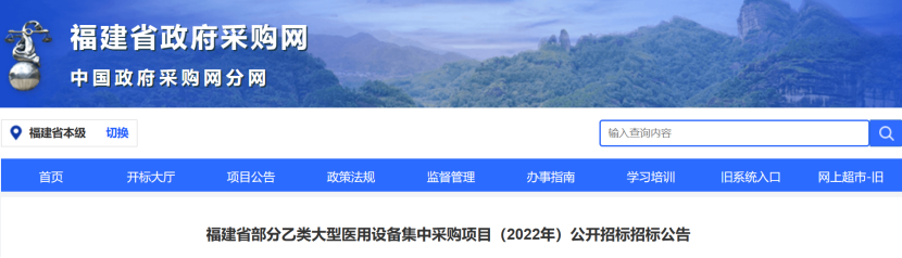 近日,福建政府采購網(wǎng)發(fā)布《福建省部分乙類大型醫(yī)用設(shè)備集中采購項(xiàng)目(2022年)公開招標(biāo)招標(biāo)公告》(以下簡稱《公告》)。