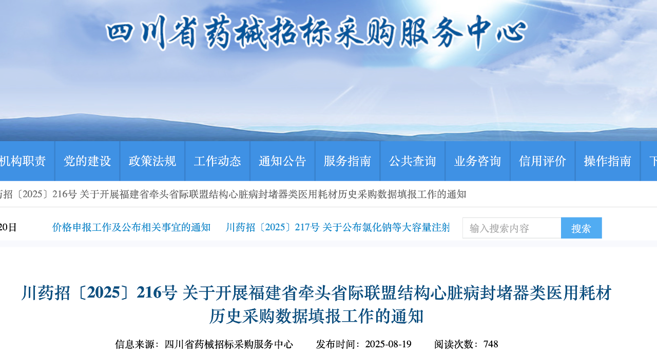 8月19日,四川、內(nèi)蒙古發(fā)布《開展福建省牽頭省際聯(lián)盟結(jié)構(gòu)心臟病封堵器類醫(yī)用耗材歷史采購數(shù)據(jù)填報工作的通知》。