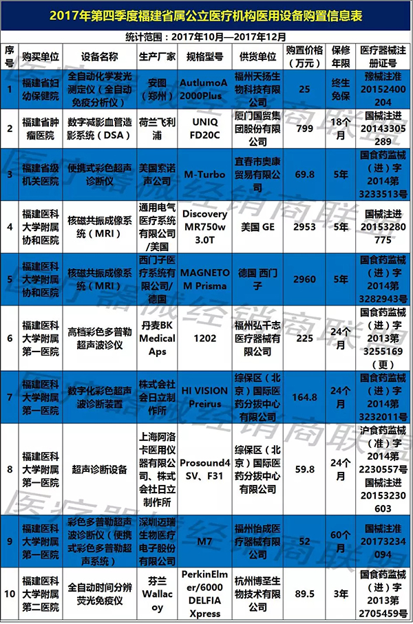 4月2日,福建省衛(wèi)計委發(fā)布了《福建省2017年第四季度省屬公立醫(yī)院購置醫(yī)用設(shè)備情況》。