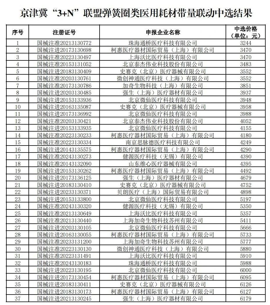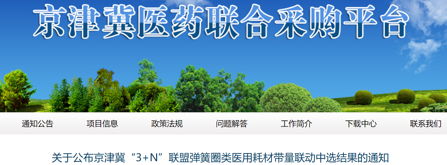 3月29日,京津冀醫(yī)藥聯(lián)合采購(gòu)平臺(tái)發(fā)布《關(guān)于公布京津冀“3+N”聯(lián)盟彈簧圈類醫(yī)用耗材帶量聯(lián)動(dòng)中選結(jié)果的通知》。