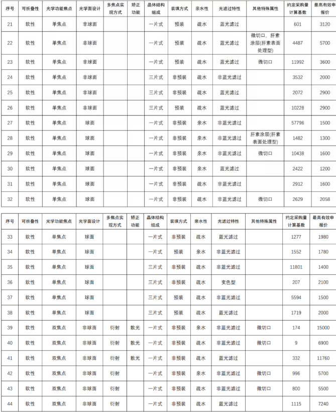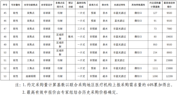 如其中某規(guī)格人工晶體的約定采購(gòu)量計(jì)算基數(shù)為290片,最高申報(bào)價(jià)為5200元/片;另一規(guī)格人工晶體的約定采購(gòu)量計(jì)算基數(shù)為59031,最高申報(bào)價(jià)為2400元/片。