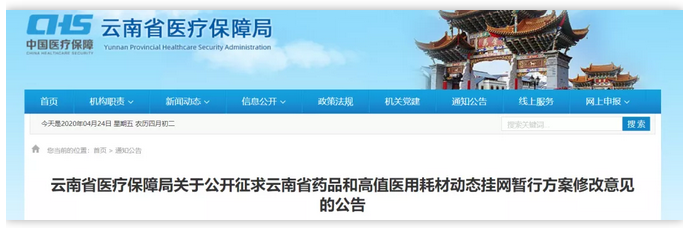 近日,云南省醫(yī)保局發(fā)布《云南省藥品和高值醫(yī)用耗材動(dòng)態(tài)掛網(wǎng)方案(征求意見(jiàn)稿)》(下稱《意見(jiàn)稿》)。