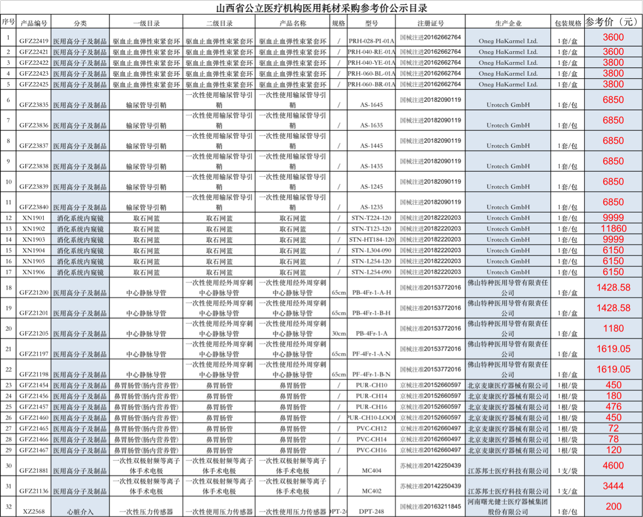 2、32種高值耗材價格公布