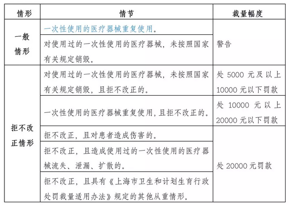 文件中指出,醫(yī)療器械使用單位重復使用一次性使用的醫(yī)療器械,或者未按照規(guī)定銷毀使用過的一次性使用的醫(yī)療器械的將按以下規(guī)定處罰。