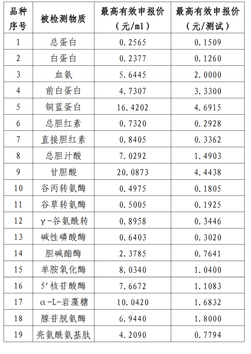 11月29日,江西醫(yī)保局發(fā)布《肝功生化類檢測試劑省際聯(lián)盟集中帶量采購公告(第2號(hào))》,公布最高有效申報(bào)價(jià)和采購需求量。