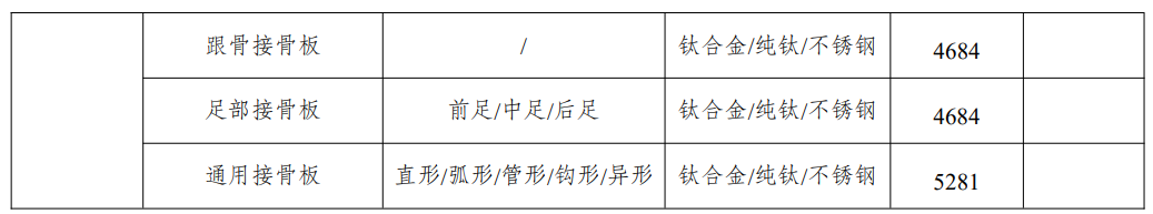 骨科創(chuàng)傷類產(chǎn)品具體目錄如下:
