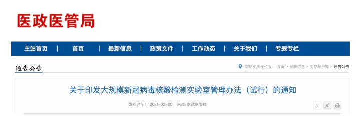 核酸檢測實驗室管理辦法開始執(zhí)行
