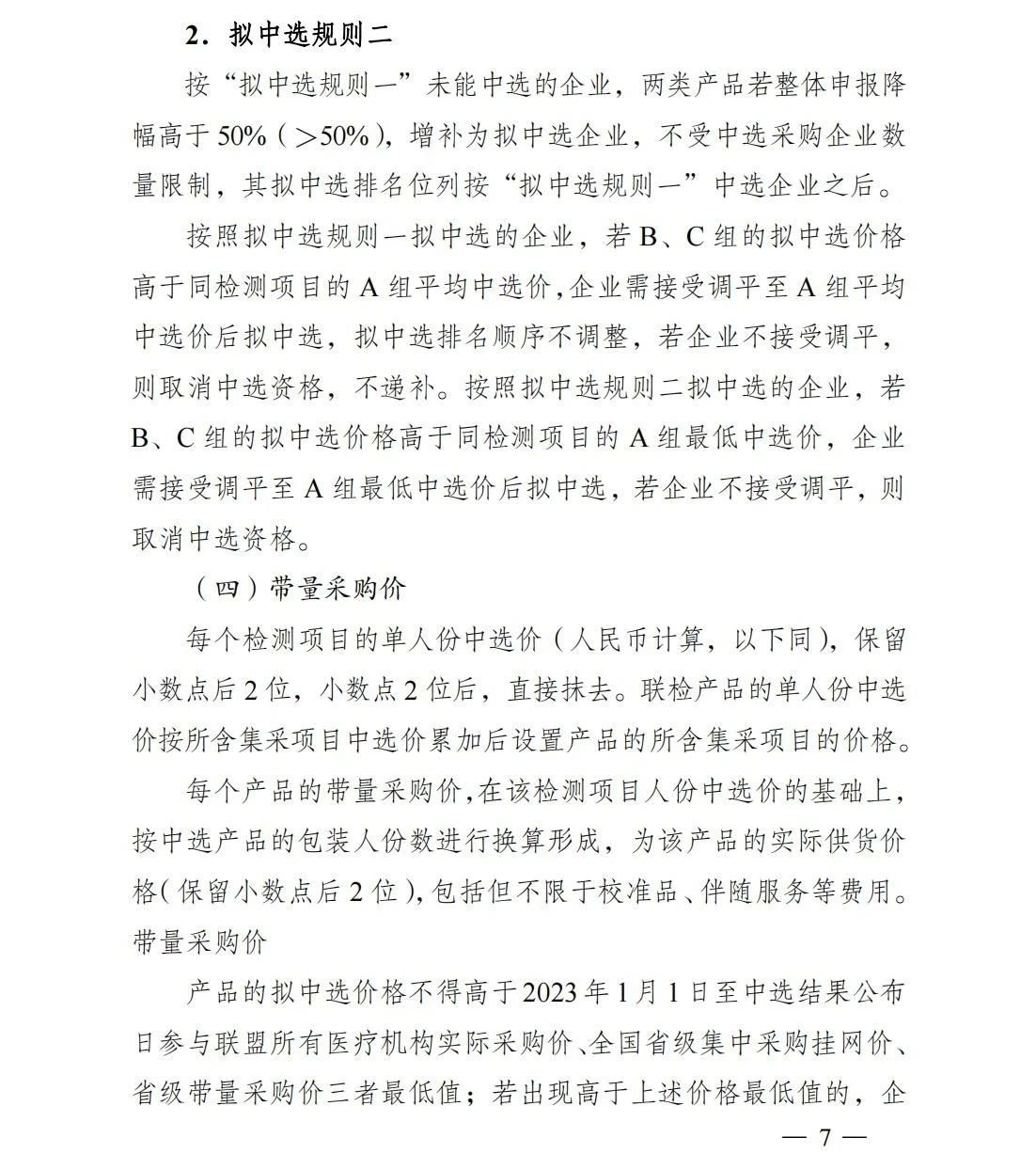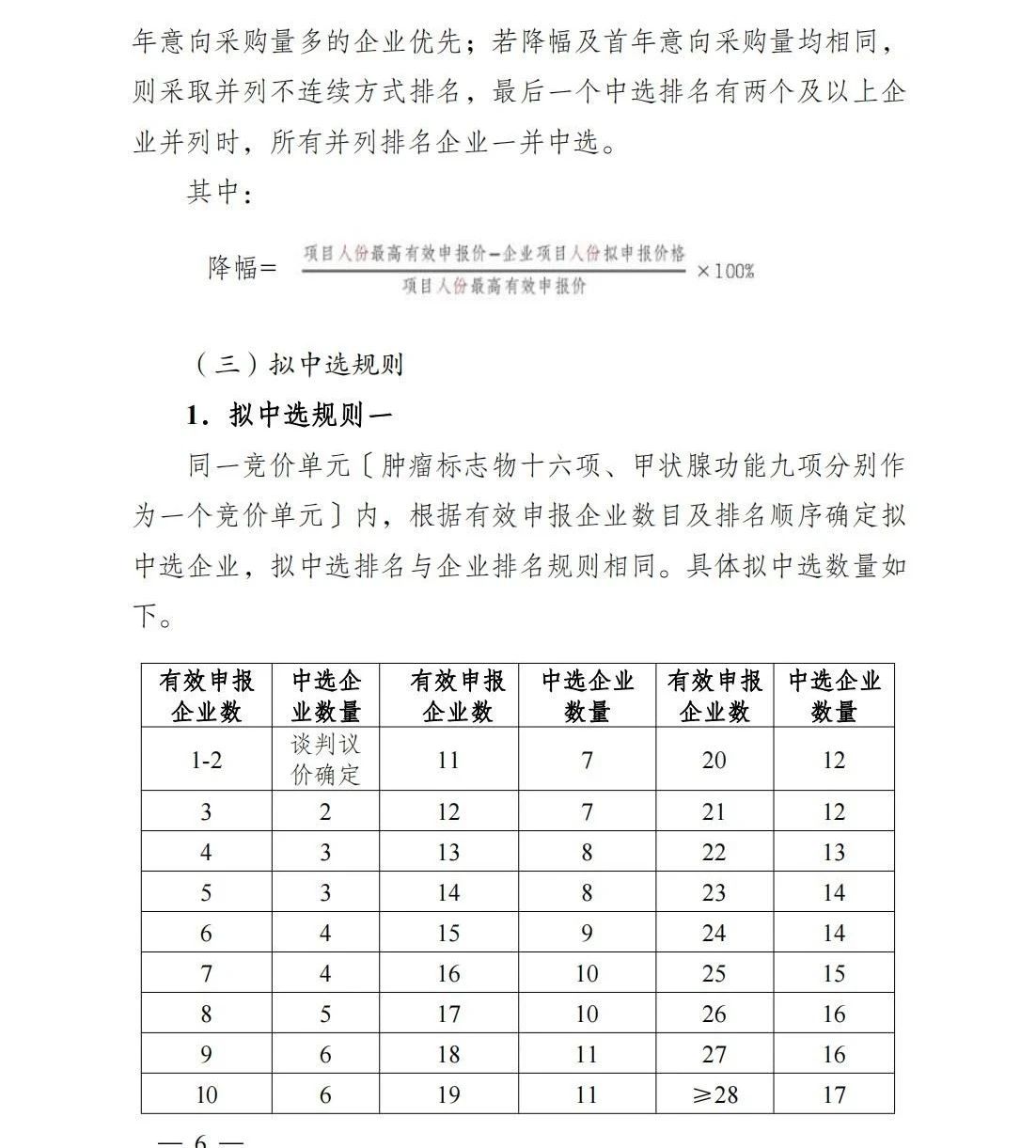 按擬中選規(guī)則一未能中選的企業(yè),兩類(lèi)產(chǎn)品若整體申報(bào)降幅高于50%增補(bǔ)為擬中選企業(yè),不受中選采購(gòu)企業(yè)數(shù)量限制(具體規(guī)則見(jiàn)文末)。