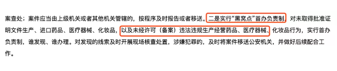 實行“黑窩點”首辦負責制。對未取得批準證明文件生產(chǎn)、進口醫(yī)療器械、及未經(jīng)許可(備案)違法違規(guī)生產(chǎn)經(jīng)營醫(yī)療器械行為,實行首辦負責制,誰發(fā)現(xiàn)、誰辦理。