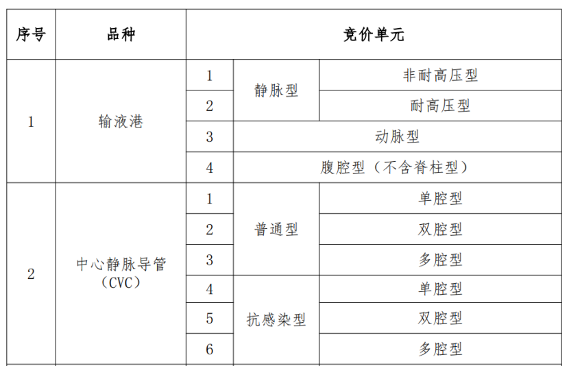 本次集中帶量采購(gòu)品種為輸液港、CVC 中心靜脈導(dǎo)管(經(jīng)中心靜脈路入)、PICC 中心靜脈導(dǎo)管(經(jīng)外周靜脈路入)、造影導(dǎo)管、造影導(dǎo)絲、血管鞘、血管止血裝置等7 類醫(yī)用耗材。