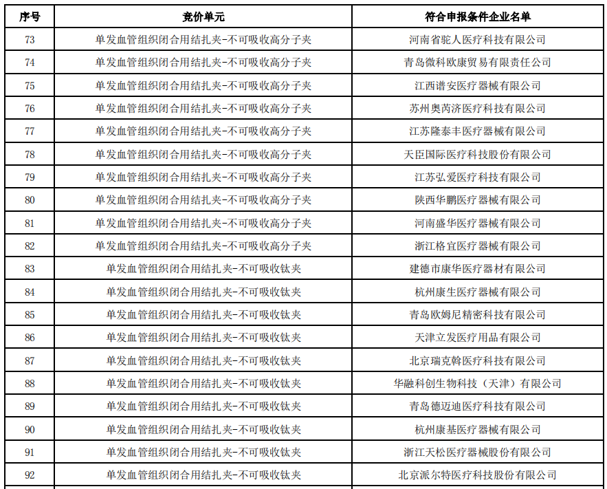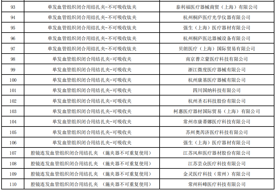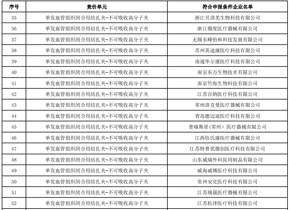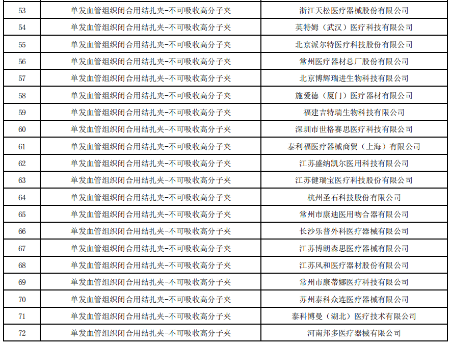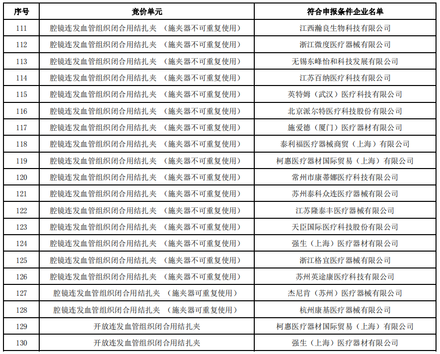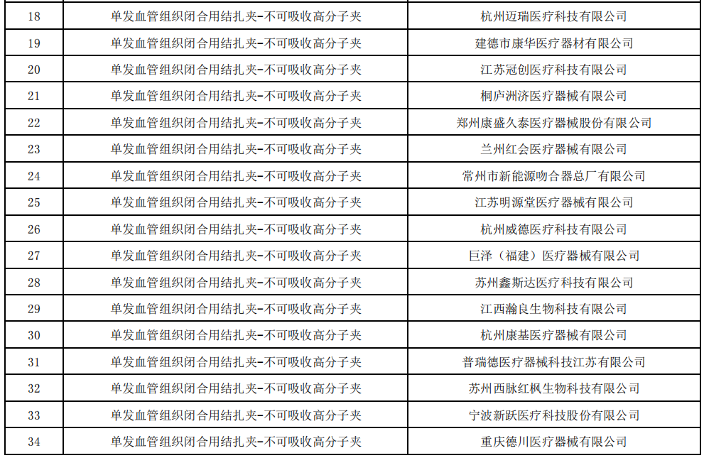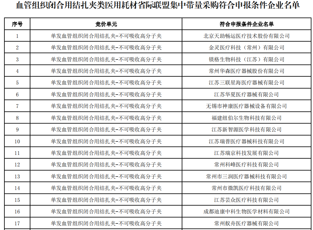 8月16日,福建醫(yī)保局發(fā)布《血管組織閉合用結(jié)扎夾類醫(yī)用耗材省際聯(lián)盟集中帶量采購公告(第5號)》,公布了符合申報(bào)條件的企業(yè)名單。