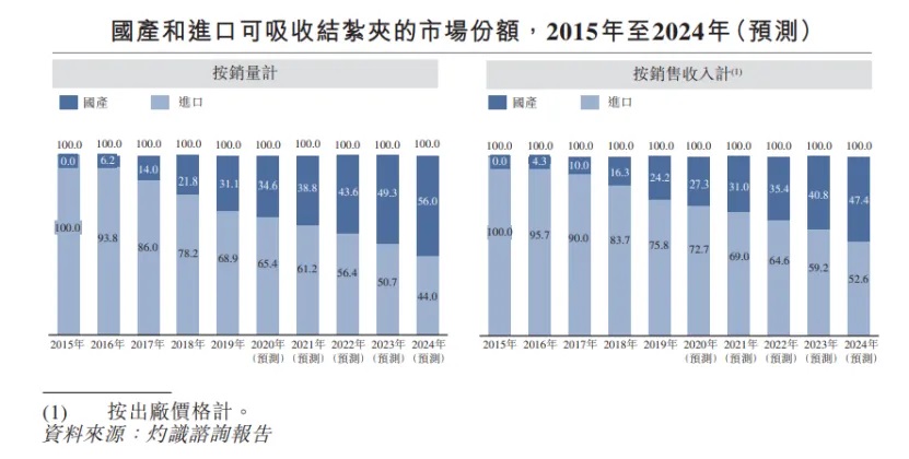據(jù)灼識咨詢報(bào)告,預(yù)計(jì)到2024年中國結(jié)扎夾市場規(guī)模將達(dá)到40.86億元,其中高分子結(jié)扎夾市場規(guī)模28.33億元,2020-2024年復(fù)合增長率達(dá)25.2%,可吸收結(jié)扎夾市場規(guī)模12.53億元,2020-2024年復(fù)合增長率達(dá)29.2%