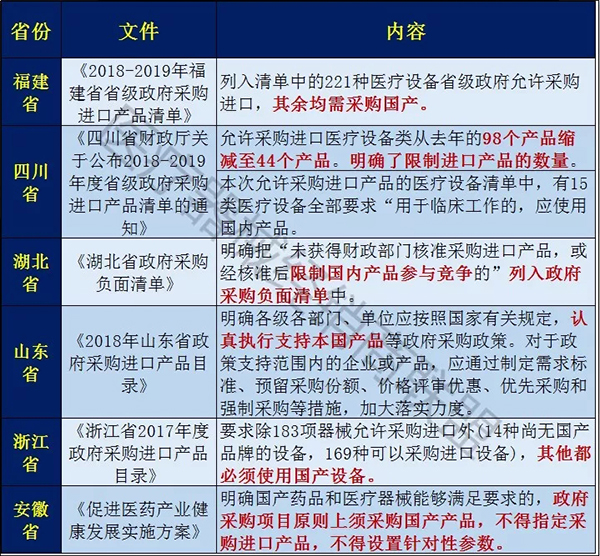 各省限制進口、鼓勵采購國產(chǎn)設備政策
