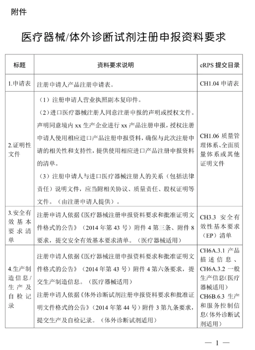 附件:醫(yī)療器械/體外診斷試劑注冊申報資料要求