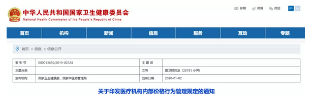 1月2日,國家衛(wèi)健委官網(wǎng)掛出《關(guān)于印發(fā)醫(yī)療機構(gòu)內(nèi)部價格行為管理規(guī)定的通知》(以下簡稱《通知》)。這份與與中醫(yī)藥管理局聯(lián)合印發(fā)的文件明確提出,要求醫(yī)療機構(gòu)建立醫(yī)療服務(wù)成本測算和成本控制管理制度、醫(yī)療服務(wù)價格調(diào)價管理制度、新增醫(yī)療服務(wù)價格項目管理制度、價格公示制度等。