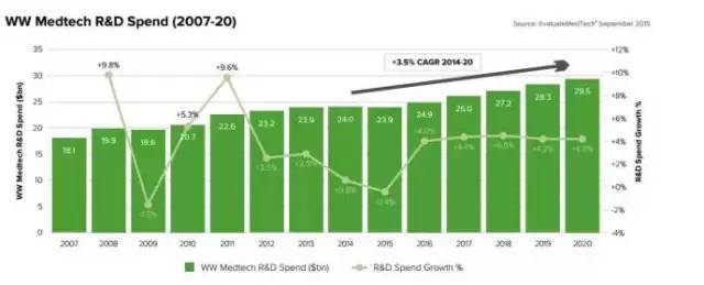 全球醫(yī)藥研發(fā)支出預(yù)計(jì)每年將增長(zhǎng)3.5%,到2020年醫(yī)療器械銷售額有望達(dá)到達(dá)到305億美元