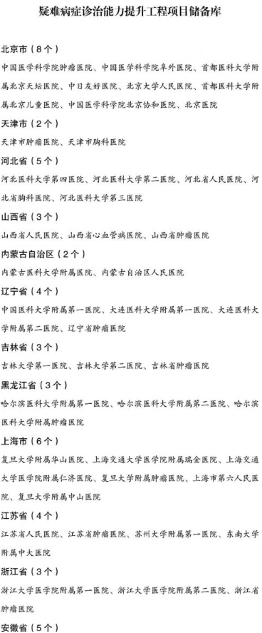國家加大投入推動(dòng)醫(yī)院改革,推進(jìn)分級(jí)診療,疑難病癥診治能力提升工程項(xiàng)目?jī)?chǔ)備庫名單: