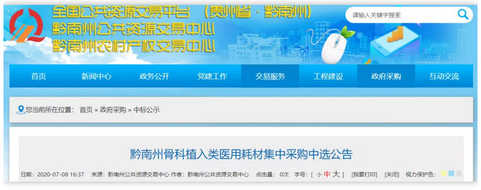 這并非黔南州首次進(jìn)行集中采購,2019年12月13日,黔南州公共資源交易中心發(fā)布《黔南州骨科創(chuàng)傷類醫(yī)用耗材集中采購中標(biāo)公告》。