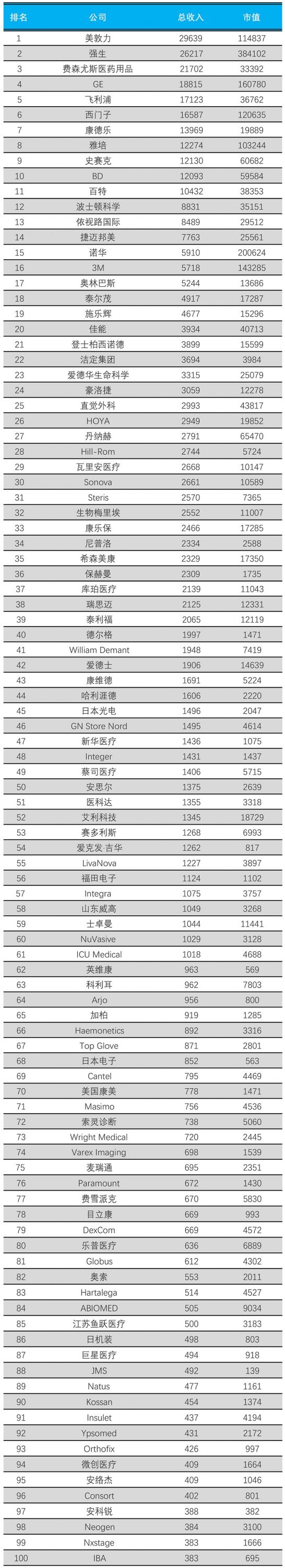 2018全球醫(yī)療器械公司100強(qiáng),6家中國(guó)公司!