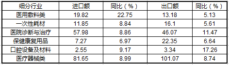 上半年,我國醫(yī)療器械進出口貿(mào)易呈現(xiàn)出進出口同比大幅增長的良好勢頭,進出口總額達到182.73億美元,同比增長8.85%;其中進口81.65億美元,同比增長8.99%;出口額為101.07億美元,同比增長8.74%,明顯高于我國醫(yī)藥工業(yè)整體貿(mào)易增幅。
