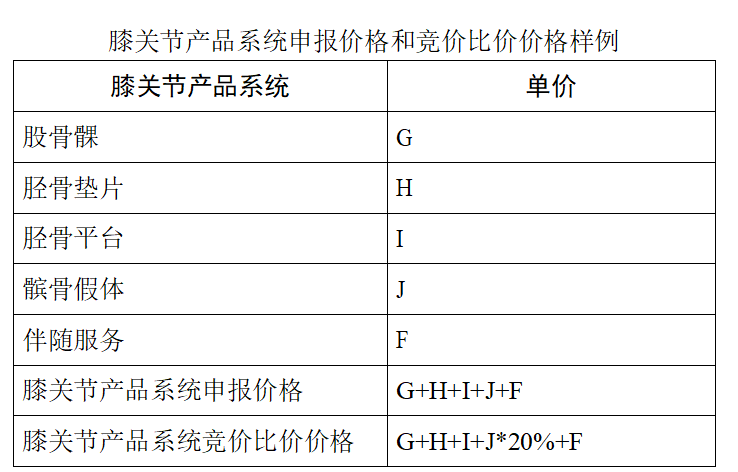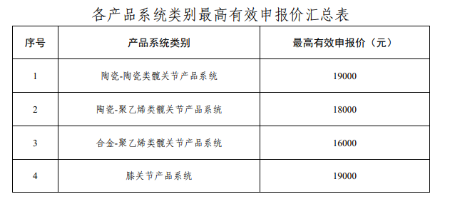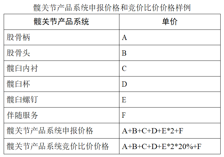 同一部件產(chǎn)品在髖 關(guān)節(jié)或膝關(guān)節(jié)不同產(chǎn)品系統(tǒng)類別和產(chǎn)品系統(tǒng)中價格應(yīng)保持一致;