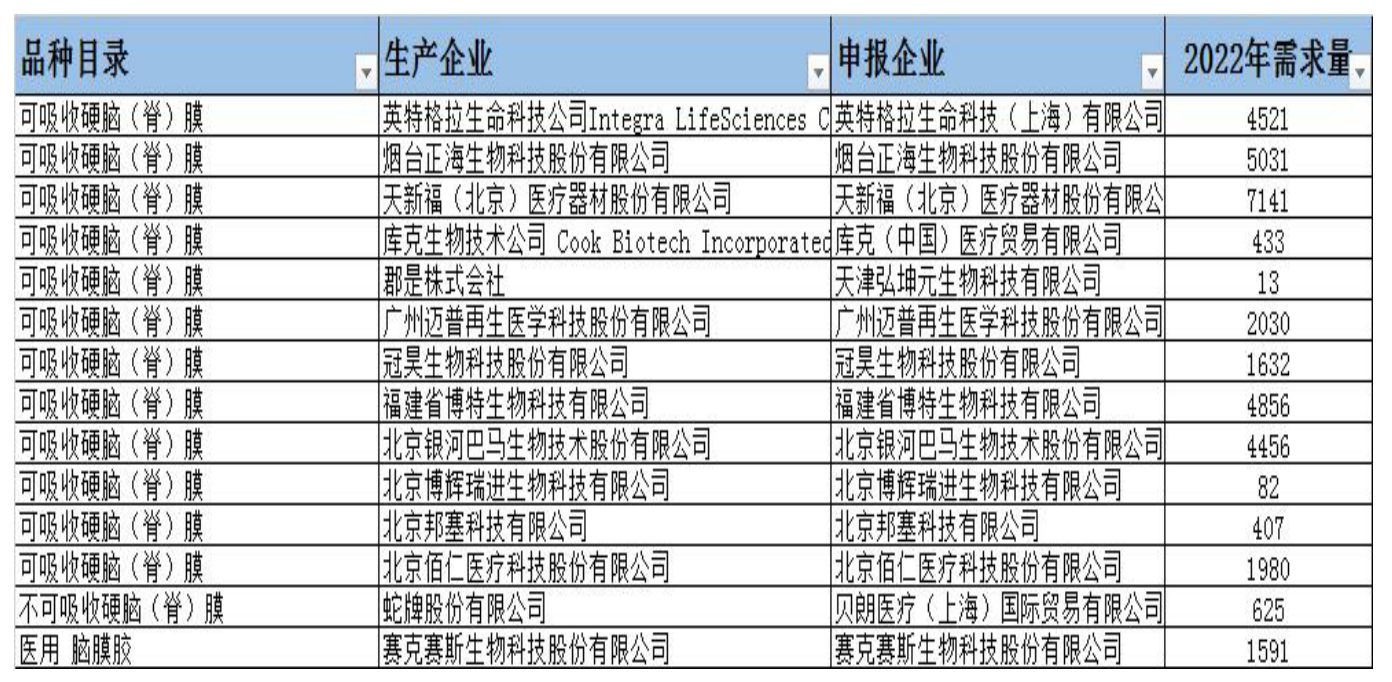 硬腦(脊)膜醫(yī)用耗材集中帶量采購品種含硬腦(脊)膜和硬腦(脊)膜輔助耗材。