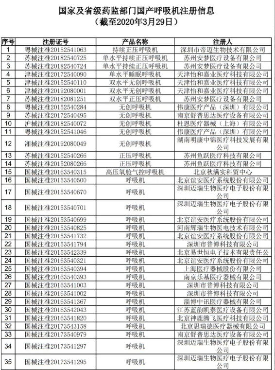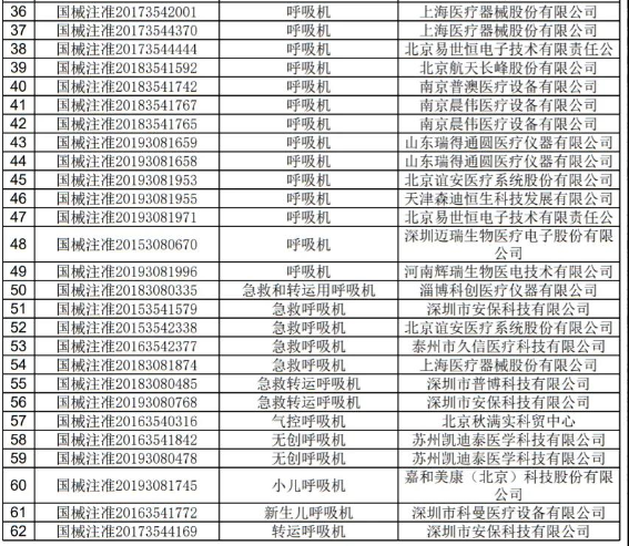 附:國產(chǎn)呼吸機(jī)注冊信息,來源于國家藥監(jiān)局官網(wǎng)