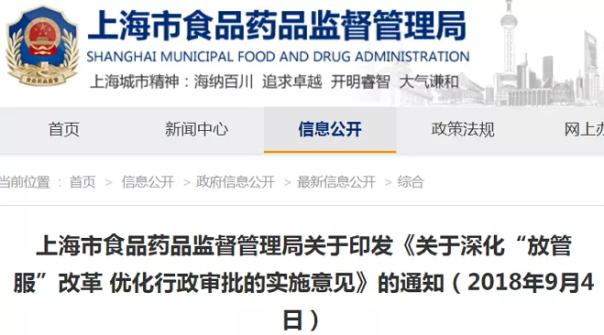 上海市食品藥品監(jiān)督管理局關(guān)于深化“放管服”改革優(yōu)化行政審批的實施意見