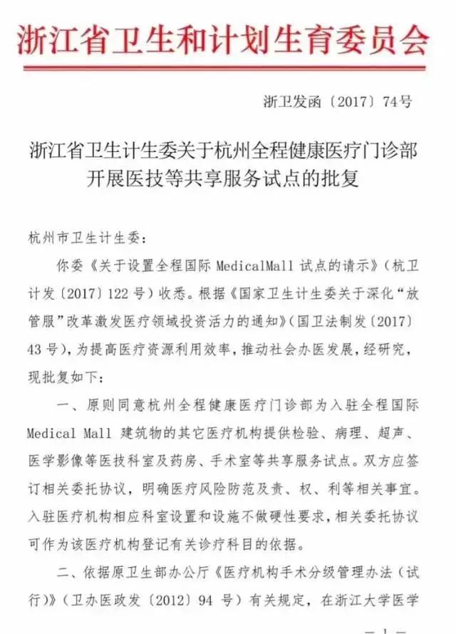 日前,浙江省衛(wèi)計(jì)委批復(fù)同意:杭州全程健康醫(yī)療門(mén)診部為入駐全程國(guó)際 Medical Mall 的其他醫(yī)療機(jī)構(gòu)提供檢驗(yàn)、病理、超聲、醫(yī)學(xué)影像等醫(yī)技科室及藥房、手術(shù)室等共享服務(wù)試點(diǎn)。入駐醫(yī)療機(jī)構(gòu)相應(yīng)科室設(shè)置和設(shè)施不做硬性要求。
