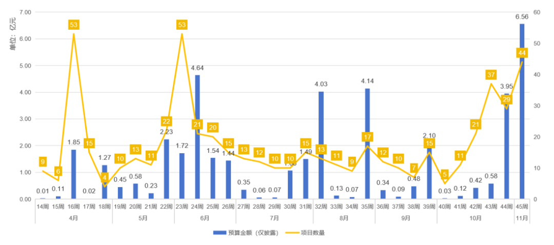 第14周(4月1日)至45周(11月10日)我國設(shè)備更新招標(biāo)情況