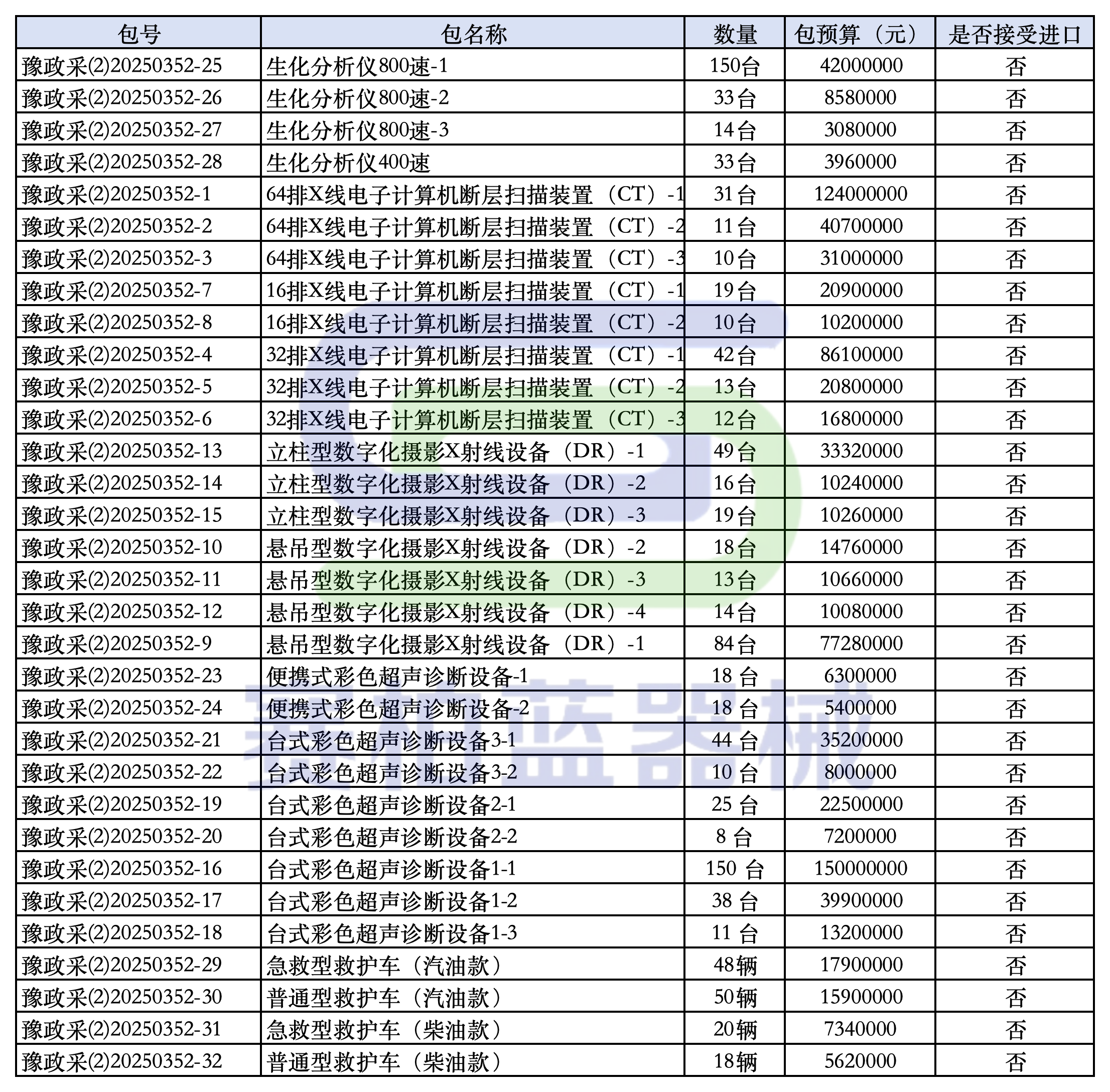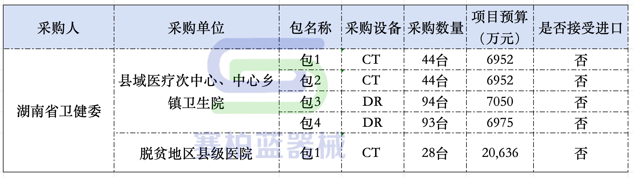 4月11日,湖南省公共資源交易中心發(fā)布兩則縣域醫(yī)共體設(shè)備招標(biāo)文件,分別為縣域醫(yī)共體“(縣域醫(yī)療次中心、中心鄉(xiāng)鎮(zhèn)衛(wèi)生院)設(shè)備更新項(xiàng)目”和“(脫貧地區(qū)縣級(jí)醫(yī)院)CT設(shè)備更新項(xiàng)目”,招采設(shè)備為CT和DR,一共303臺(tái),總預(yù)算4.86億,開(kāi)標(biāo)時(shí)間為5月6日。