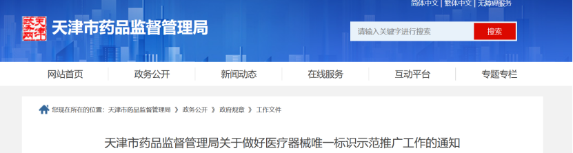 近日,天津市藥監(jiān)局發(fā)布《天津市藥品監(jiān)督管理局關(guān)于做好醫(yī)療器械唯一標識示范推廣工作的通知》(以下簡稱《通知》)。